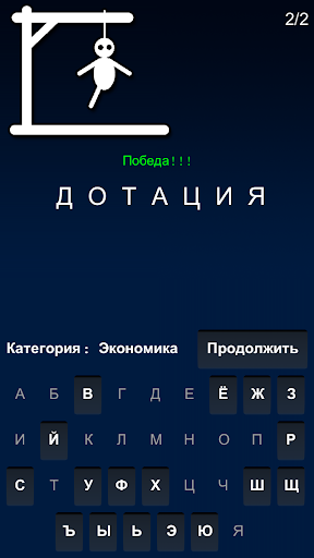 Здесь тебя ждет приятная и веселая игра, не отнимающая время на ненужные действия. Зачем тратить время зря? В этой виселице игра начинается сразу после запуска, без ненужных меню.