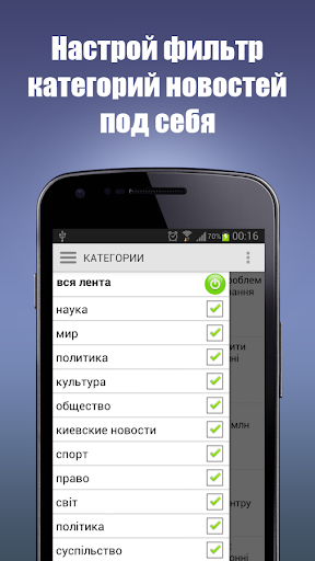 – Все разделы сайта с настройками предпочитаемых категорий;