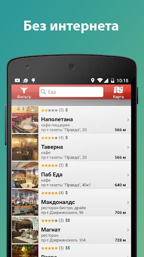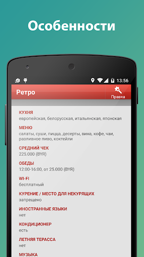 ★ каталог содержит следующие категории: рестораны, кафе, wi-fi доступ, банкоматы, аптеки, такси