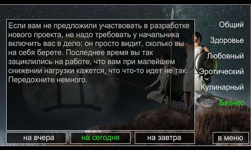 Приложение содержит 6 ежедневно обновляемых гороскопов: