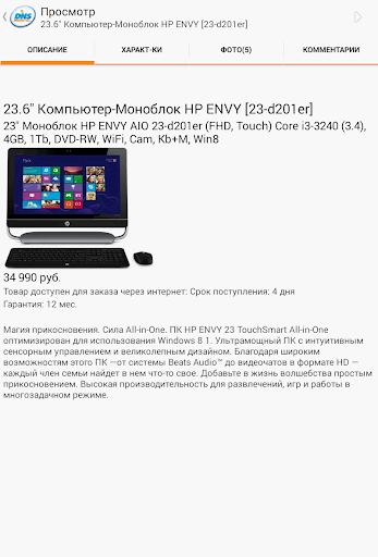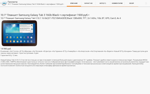 - Подробно просматривать характеристики, фотографии, комментарии по выбранному товару