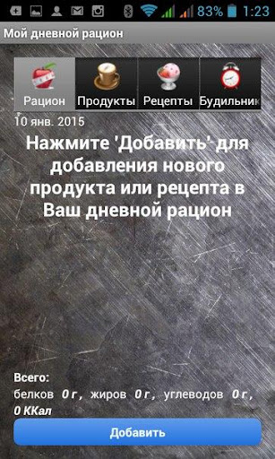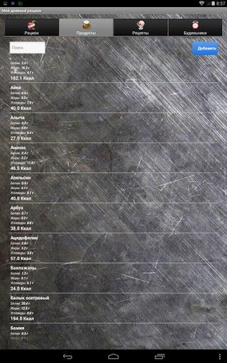 - Позволяет записывать ежедневный рацион продуктов с указанием веса