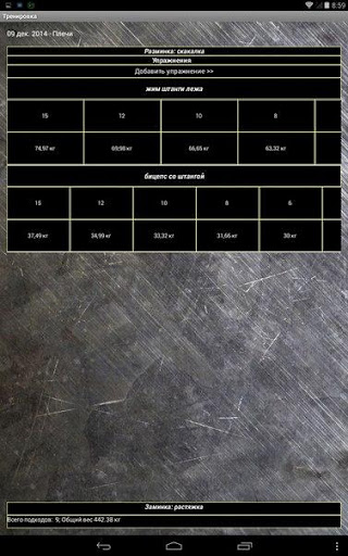 - Есть статистика веса, сколько вы поднимаете на каждой тренировке. Статистика выводится на график.