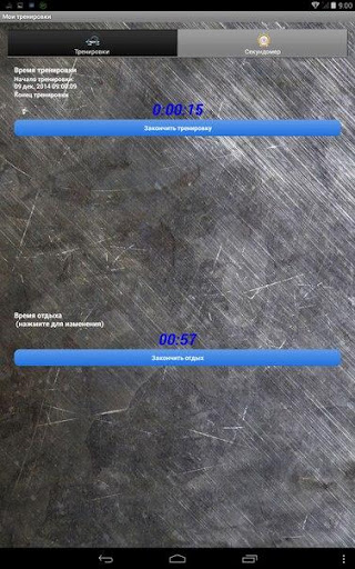 - Есть секундомер для подходов и секундомер общего времени занятия. Время прикрепляется на календаре к дню тренировки, можно отслеживать как меняется время занятий.