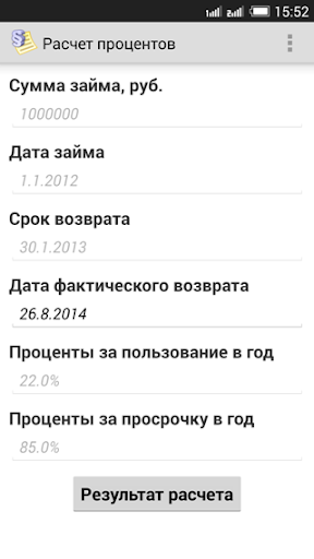 В бесплатной версии нет возможности подготовки текстов договора займа и расписки о получении суммы займа, выбора формулы расчета процентов.