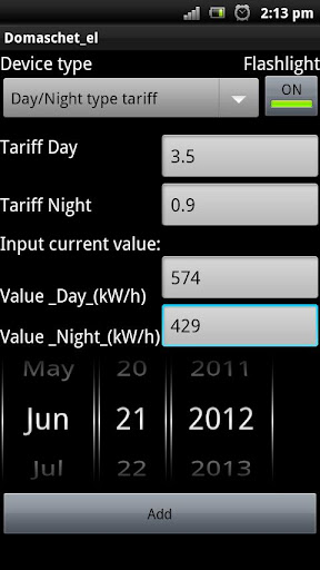 Просто введите текущее значение счётчика и программа рассчитает потребленную энергию, а также общую сумму.