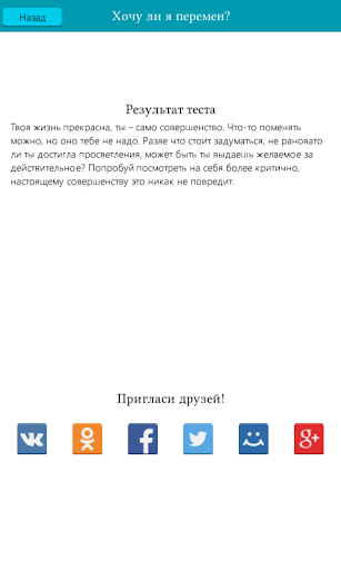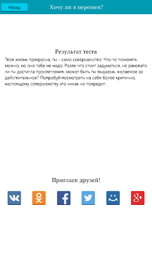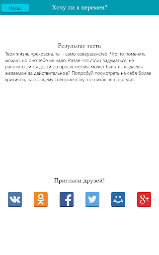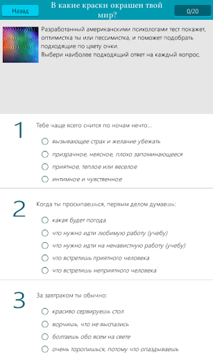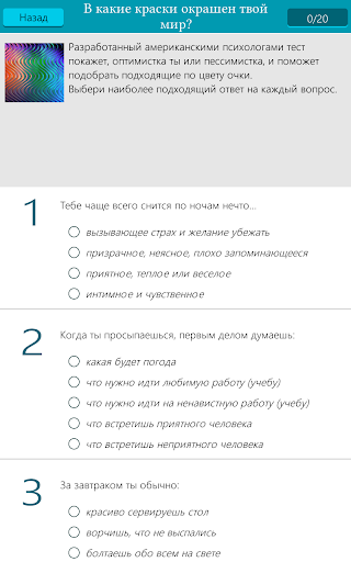 Простой, интуитивно понятный и оптимистичный интерфейс, советы лучших практикующих психологов и несколько юмористических тестов для поднятия настроения ждут тебя.