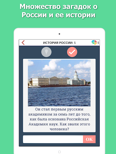 * Аккуратный минималистичный flat-дизайн, концентрирующий ваше внимание на основном процессе – отгадывании загадок и вопросов.