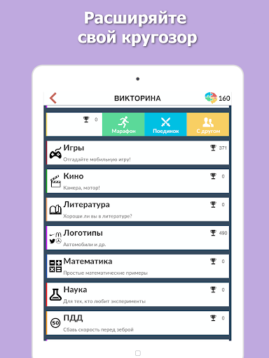 * Увлекательный режим “Викторина” с более чем 15000 вопросами