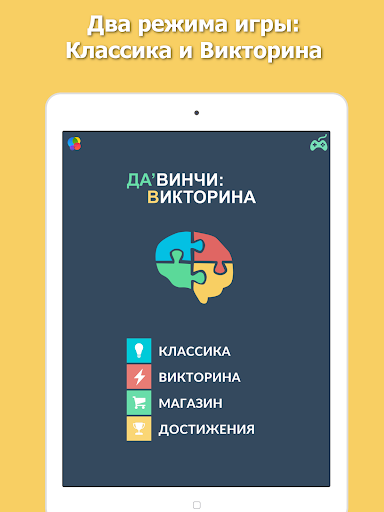 Игра "Загадки ДаВинчи: Викторина" состоит из двух полноценных режимов. Первый режим,“Классика”, включает в себя более 700 загадок в 20 различных категориях. Здесь вы встретите такие темы: