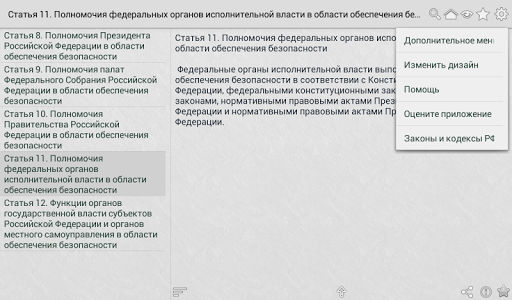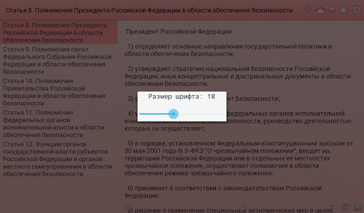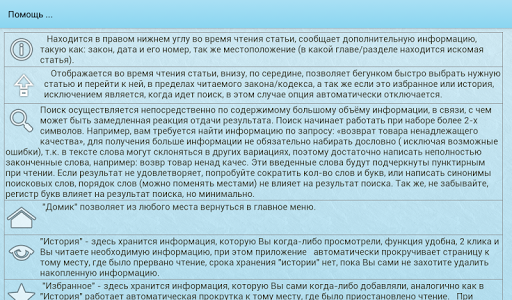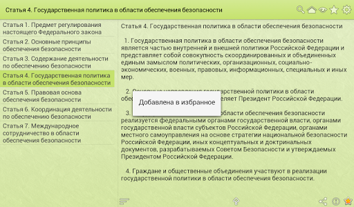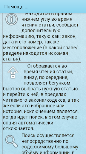 5. Возможность листать/просматривать (свайпом) статьи, всего закона целиком.