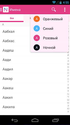 Еще можно выбрать цвет интерфейса из доступных цветов — оранжевый, синий, розовый и ночной.