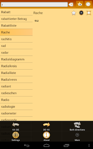 Это Немецко-Казахский и Казахско-Немецкий словарь (Kasachisch-Deutsches und Deutsches-Kasachisch Wörterbuch). Приложение работает в режиме ОФФЛАЙН и не требует интернет-соединения для работы.