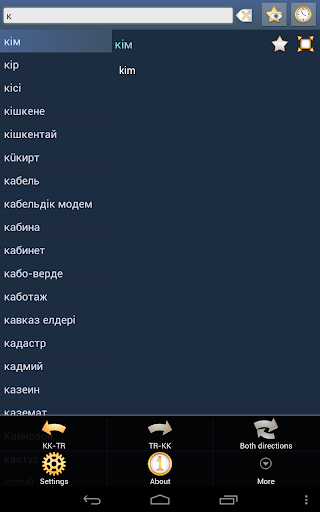 Это Турцко-Казахский и Казахско-Турецкий Словарь (Kazak-Türkçe ve Türkçe-Kazak Sözlük). Приложение работает в режиме ОФФЛАЙН и не требует интернет-соединения для работы.