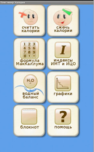 Приложение на русском языке . Калькулятор для расчета норматива калорий по формулам Миффлина-Сан-Жеора,Харриса Бенедикта, учитывающий при расчете возраст, вес, рост, пол. Надежный помощник в расчете калорий при составлении ежедневного меню из более 1000 наименований продуктов, сигнализирующий о превышении норматива калорий. Считает калории, белки, жиры и углеводы, а также выводит содержание минеральных веществ и витаминов по отдельным видам продуктов. Расчет индивидуального водного баланса, в зависимости от веса, физической нагрузки и ее интенсивности, расчет индексов массы тела и центрального ожирения, расчет идеальных пропорций по формуле МакКаллума, возможность построения графиков и ведения записей в блокноте.