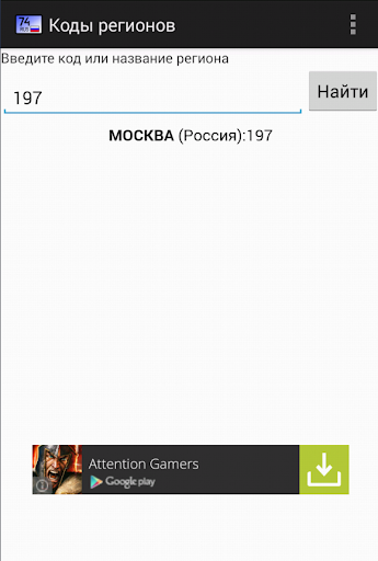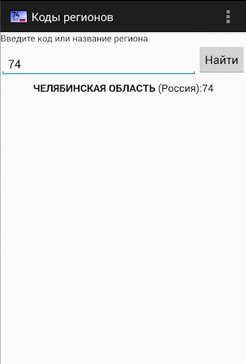 Программа для поиска региона России по кодам на автомобильных номерах.