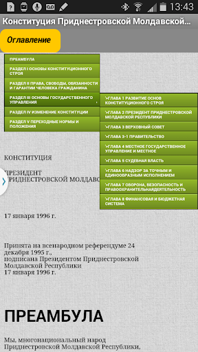 Текущая редакция Конституции Приднестровской Молдавской Республики в интерактивном виде.