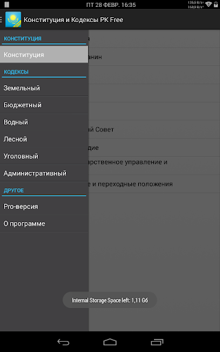 Мы так торопились показать вам новую версию, что не успели добавить в приложение кодексы, которые многие очень ждут (трудовой, гражданский, налоговый и др.), обещаем, что в марте 2014 г. вы их увидите!