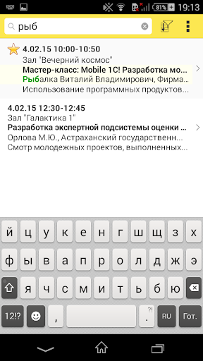 Интересующие доклады можно добавлять в «Избранное» - в таком случае вы получите уведомление даже в случае, когда приложение не активно (в фоне) или вовсе закрыто.