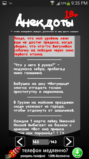 Очень надеемся, что новые анекдоты, доступные в приложении, смогут значительно развлечь вас и заставят хоть на время забыть о проблемах, грустном настроении и скуке.