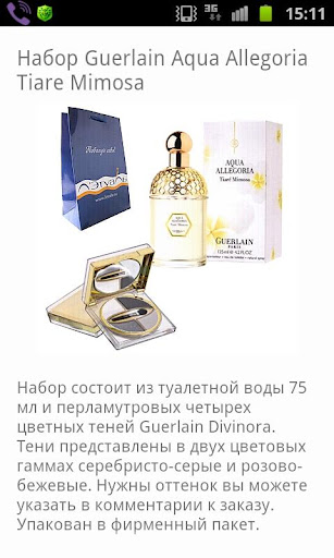 Каталог косметики и парфюмерии. Содержит фото и описание товаров, которые можно заказать с доставкой по России.