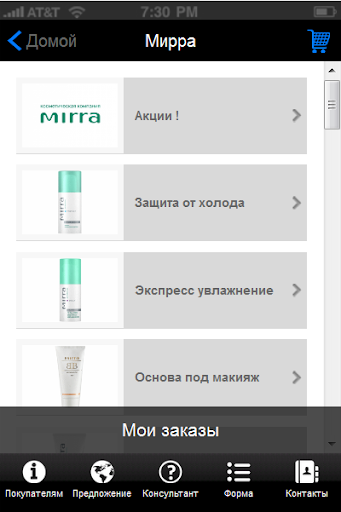 Приложение дистрибьютора MIRRA в г. Симферополе. Для Вас инновационная косметика для профессионального и домашнего ухода.