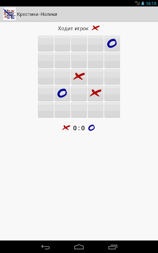 Это андроид версия популярной логической игры между двумя противниками на квадратном поле 3 на 3 клетки или большего размера (4 на 4 или 5 на 5). Игроки по очереди ставят на свободные клетки поля знаки (один всегда крестики, другой всегда нолики). Первый, выстроивший в ряд (3 или более, в зависимости от размера поля) свои фигуры по горизонтали, вертикали или диагонали, выигрывает. Первыми ходят крестики.