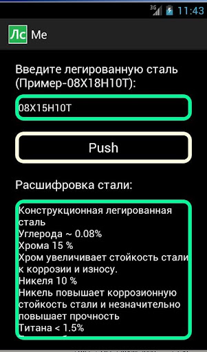 Программа создана для анализа состава конструкционных, инструментальных легированных сталей и определения структуры действительной только для нержавеющей стали. В соответствии с ГОСТ 4543-71,ГОСТ 5950-73 ввод осуществлять цифрами и заглавными буквами русского алфавита.