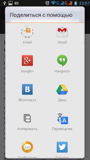- Быстрая публикация произведения в Facebook, Google+, Вконтакте, Gmail, Twitter, SMS