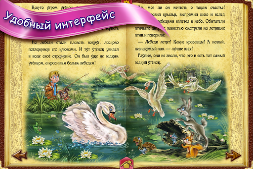 Удобный и понятный интерфейс позволит ребёнку пользоваться библиотекой даже без помощи взрослых. А волшебная фея поможет малышу выбрать самую интересную сказку.
