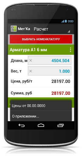 МетКа – это металлургический калькулятор с указанием средних цен на металлопрокат - в этом его главное отличие от остальных подобных приложений. Ежедневно обновляемая цена берется с портала Мониторинг Цен (http://www.mcena.ru) и позволяет постоянно быть в курсе меняющейся конъюнктуры рынка.