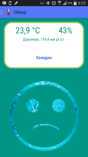 Метеостанция показывает показания термометра, барометра и влажности используя датчики телефона.