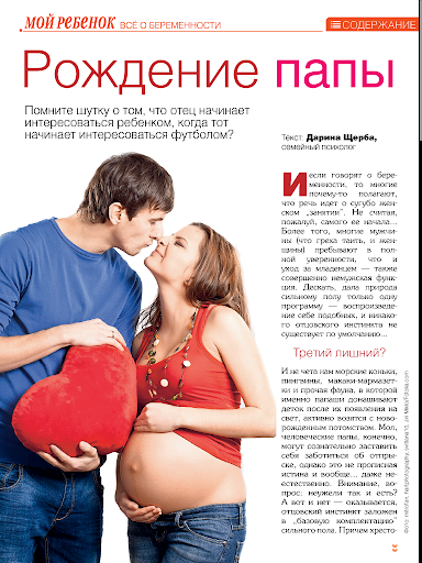 «Мой ребенок» - лучший украинский журнал для мам и пап. В этом интерактивном приложении для планшетных ПК мы собрали наиболее актуальную информацию о беременности и родах. В приложении «Все о беременности» вы найдете календарь на все 40 недель, особое меню для каждого триместра и вкусные рецепты, советы, какой вид спорта выбрать и йогу для беременных. А также узнаете о том, как не набрать лишний вес, что делать с «капризами» настроения и токсикозом, как подобрать имя малышу и что купить к его рождению. Читайте про способы обезболивания родов и методики общения с крохой до рождения. А будущие папы узнают о том, что такое отцовский инстинкт и как он «включается», а также смогут пройти тест «Готовы ли вы к совместным родам?».