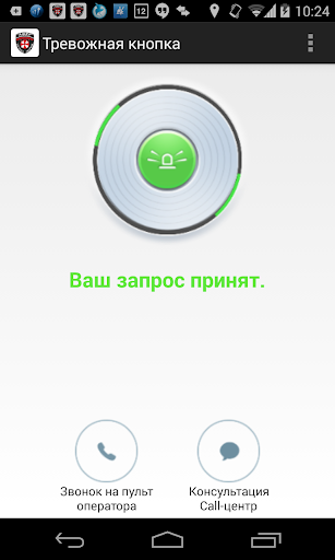 Об успешном прохождении тревожного извещения сигнализирует изменение цвета иконки кнопки вызова с красного цвета на зеленый и текстовое извещение «Ваш вызов принят», после чего приложение позволяет использовать телефон в штатных режимах, так как «отбой» и отключение проводится только с пульта охранной Компании после окончания отработки тревожного вызова. Если по причинам качества связи либо особенностей текущего местоположения (подвалы, тоннели) Вы не получили подтверждение о прохождении тревожного извещения – воспользуйтесь меню «Позвонить на пульт», которое доступно сразу после установки приложения, даже без активации основной функции. Используется также кроме как резервный голосовой канал связи в случае наличия существующих договорных отношений и необходимости оставить заявку на пульте . Опция доступна в один клик и предоставляет выбор оператора на который будет совершен звонок с целью экономии средств.