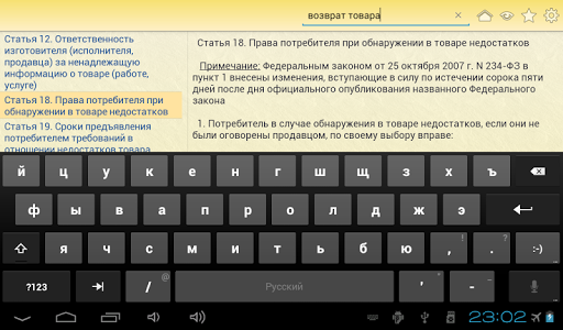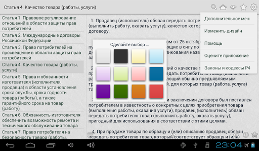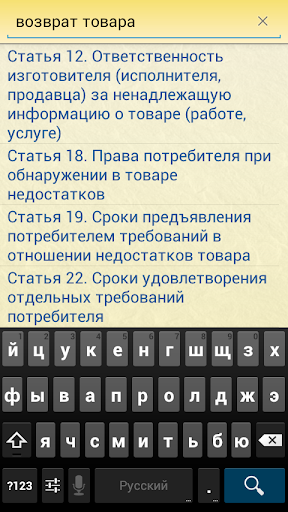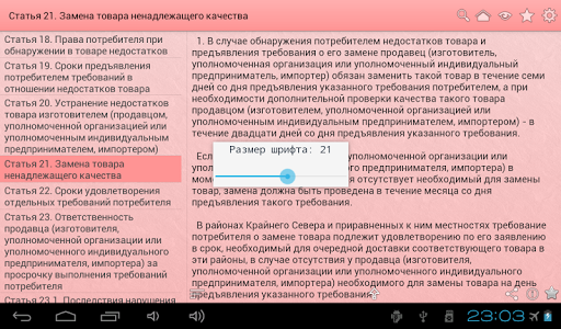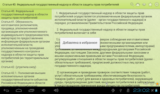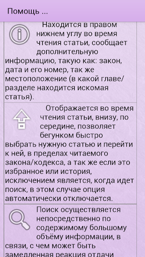 5. Возможность листать/просматривать (свайпом) статьи, всего закона целиком.