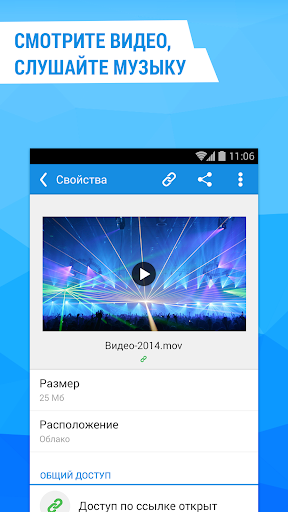 * В Облаке Mail.Ru для Android можно смотреть видео и слушать музыку. Просматривайте документы MS Office: Word, Excel, Power Point, PDF, а также файлы в других форматах (на некоторых моделях требуется установка дополнительных программ).