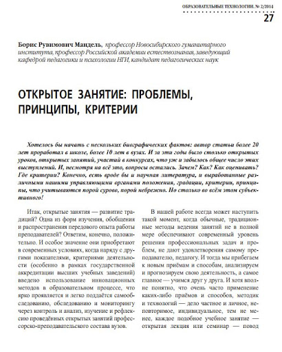 Журнал для организаторов и специалистов обучения в системе профессионального образования. В содержании — технология, теория и практика вузовского образования. Основные рубрики: «Образование и общество», «Теория образования и обучения», «Теория и практика проектирования», «Технология и практика обучения».