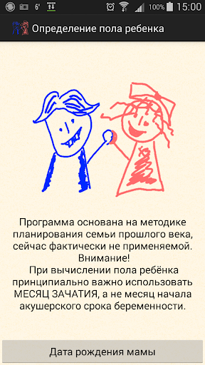 Программа основана на методике планирования семьи начала прошлого века, сейчас фактически не применяемой. Небольшое тестирование показало беспрецедентную постфактическую точность.