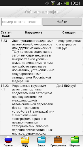 Штрафы КоАП в редакции от 1 января 2015 года: списком с возможностью поиска нужной статьи.