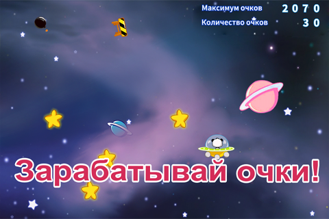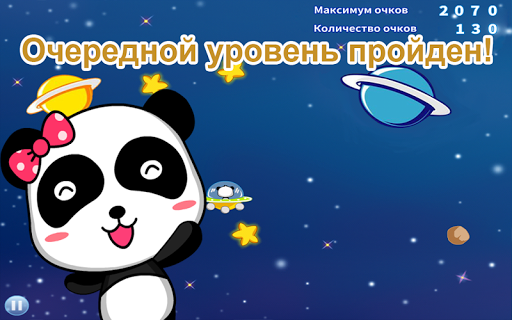 В этой познавательной игре малыш отправляется вместе с маленькой пандой в космос. Управлять космическим кораблем можно как в обычном ручном режиме, так и в "гравитационном" режиме, при котором для изменения направления корабля нужно изменять положение вашего мобильного устройства. Космос полон различных объектов, и к одним нужно стремиться, а от других - уклоняться. Вашему малышу потребуются настойчивость и хорошая реакция, чтобы достичь 6-го уровня. Так чего же ждать? Отправляемся исследовать просторы вселенной прямо сейчас!