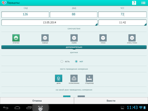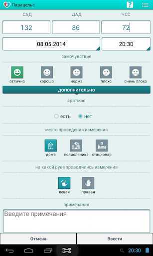 Контролируйте АД - чтобы жить! Основная задача приложения - помочь правильно подобрать терапию. «Парацельс» - победим гипертонию вместе. Самый многофункциональный дневник самоконтроля. Триальная версия программы. Вы можете бесплатно ознакомится и использовать все модули программы в течение 14 дней. Приложение не проводит измерений. Для измерений используйте специализированные сертифицированные медицинские приборы.