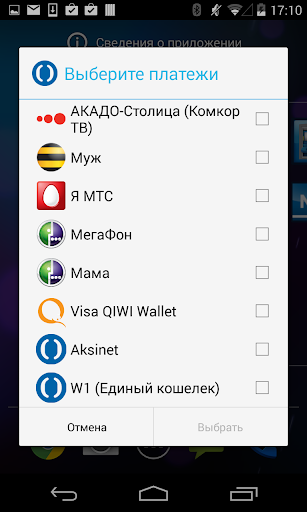 Виджет «Платежи» позволяет по шаблонам мобильного банка Линк оплачивать сотовую связь, платное ТВ, интернет и пополнять электронные кошельки.