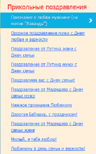 День семьи, любви и верности или День Петра и Феврони один из самых добрых и теплых праздников. В этот день поздравляют любимых мужей, жен, детей, а также близких и дальних родственников. Мы отобрали для сервиса соответствующий контент к этому семейному празднику.