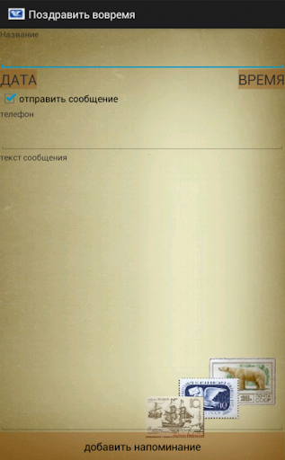 Мы привыкли создавать напоминания, чтобы не забыть поздравить наших друзей и знакомых. С этим приложением вы не только сможете поставить напоминание, но и заранее написать поздравительный текст. Просто укажите дату и время, номер телефона и текст сообщения и поздравительная смс отправится в нужный момент.