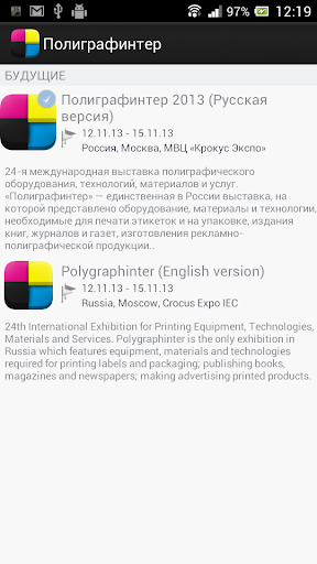 Установите это приложение для удобства посещения выставки полиграфического оборудования, технологий, материалов и услуг «Полиграфинтер». В приложении представлен интерактивный путеводитель, планы залов, подробная информация об участниках выставки, расписание мероприятий деловой программы.