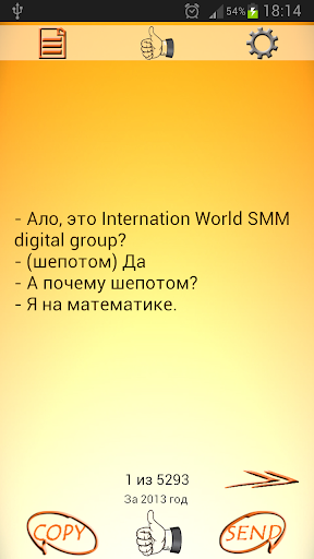 Понравившийся прикол можно добавить в избранное, скопировать в буфер, послать на смс, вконтакте, одноклассники и т.д. (любое установленное на телефоне приложение, которое принимает текст)