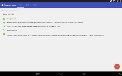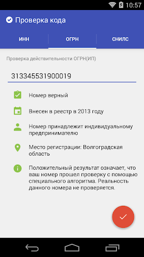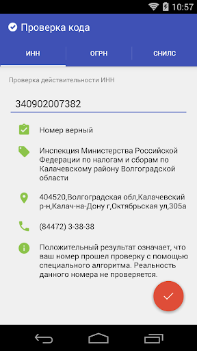 Проверка корректности кодов ИНН, ОГРН, СНИЛС. Для кодов действующих на территории РФ. Положительный результат означает, что номер прошел проверку с помощью специального алгоритма. Реальность данного номера не проверяется.