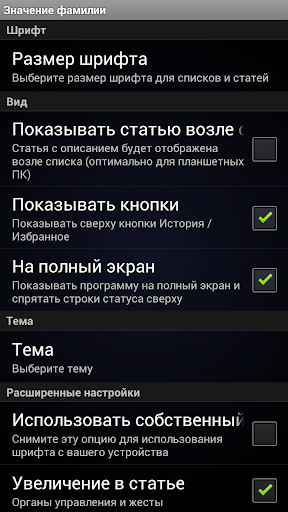 Внимание! При первом запуске приложения необходимо будет скачать базу данных со всеми фамилиями. Рекомендуется скачивать на карту памяти через Wi-Fi.