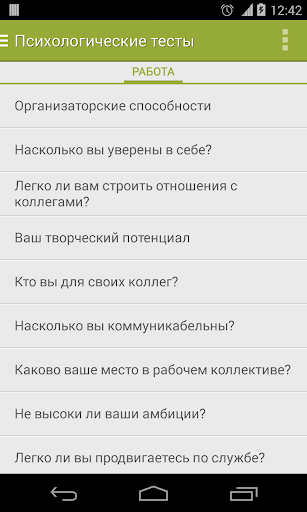 Приложение "Лучшие психологические тесты" представляет собой сборник из более чем 100 психологических тестов для людей различного возраста и пола. Используя тесты узнайте все о своей личности, чувствах, отношениях, карьере. Вы получите ответы на давно мучившие вас вопросы: добры ли вы, насколько вы романтичны, коммуникабельны и многое др. С их помощью вы сможете составить достаточно полную картину о личности интересующего вас человека (о его интеллекте, характере, темпераменте, отношениях в семье, на работе). Психологические тесты - не только возможность узнать о человеке больше, но и способ интересно и с пользой для себя и окружающих провести время. Каждый тест сопровождается разъяснением и толкованием полученных результатов. Желаем удачи.