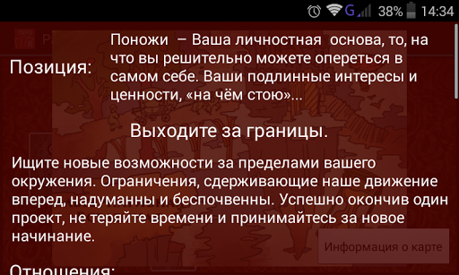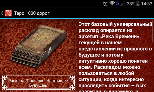 Таро "1000 дорог" создано на базе авторских ассоциативных метафорических карт "1000 дорог", которые активно применяются в работе психологов для индивидуального консультирования, сказкотерапии, арт-терапии и пр. В данном приложении помимо стандартных значений классического Таро используются психологические метафоры и образы для более глубокого прояснения проблемной ситуации и поиска ресурсов для достижения желаемого.